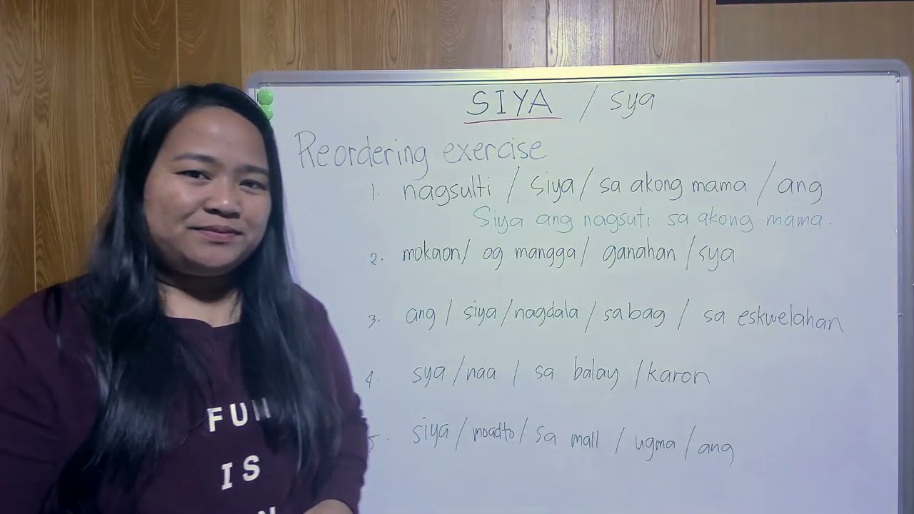 Reordering Exercise: Form correct Cebuano sentences using “siya / sya ”