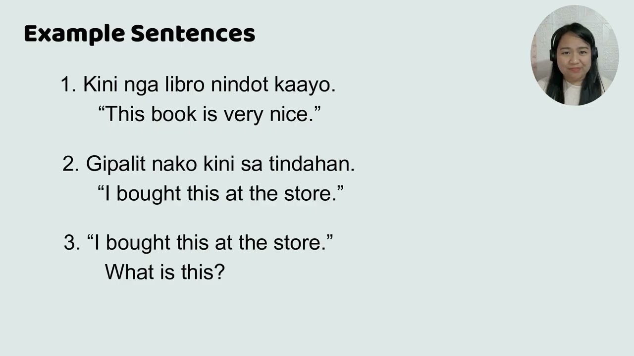 • They can stand alone (Kini/Kani! “This one!”) or modify a noun (kini nga libro / kani nga libro “this book”).